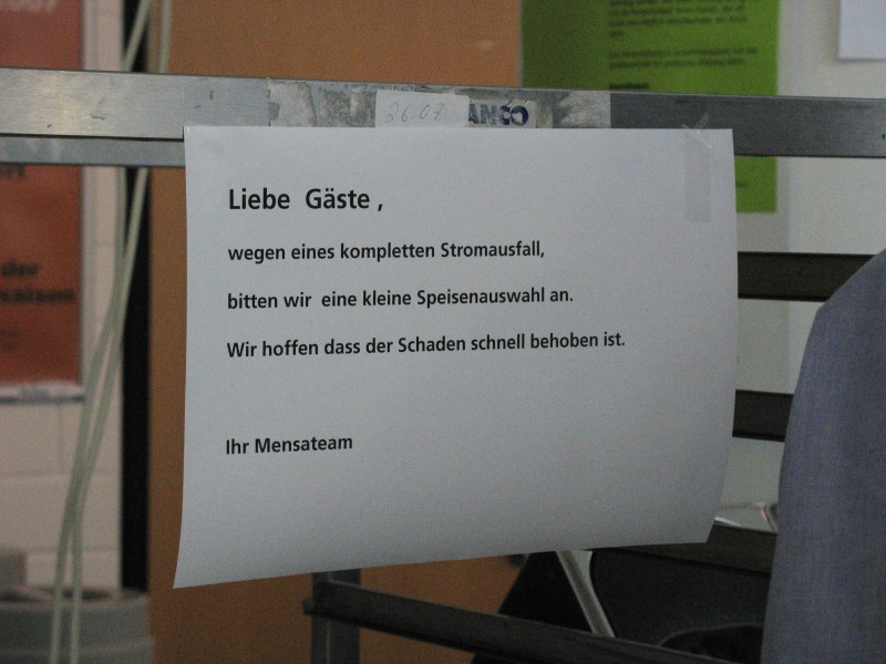 Warum erzwingt ein Stromausfall den einen Umzug der Essensausgabe vor die Mensa?