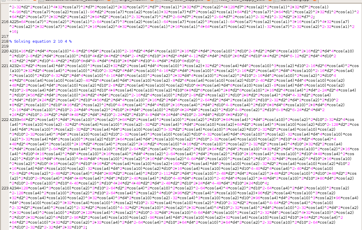 Aus „d1^4“ muss in C++ natürlich „pow(d1,4)“ werden. => Thank God for regular expressions! Und dem Micha, der mir geholfen hat, die zu erstellen, nachdem ich zuerst mal versucht hatte, eine Gleichung per Hand umzuformen.